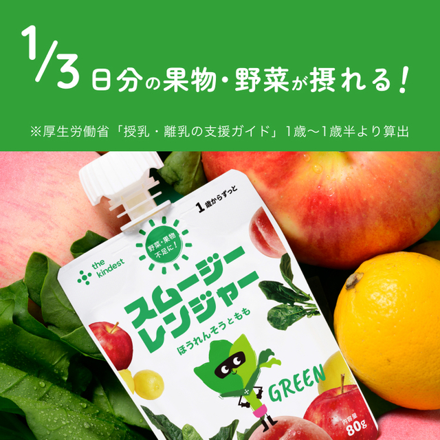 ※商品の改訂などにより、お手元の商品と当ホームページでは記載内容が異なる場合があります。お手元の商品にてご確認ください。お子さまが飲みやすいすっきりとした味わいのグリーンスムージーです。